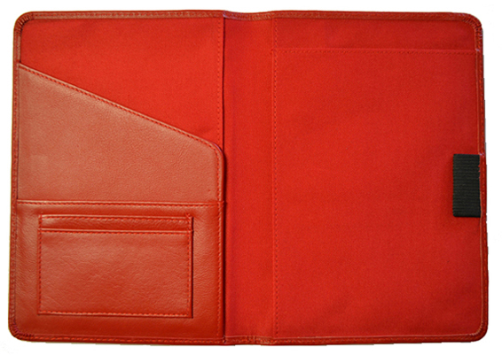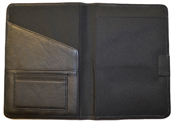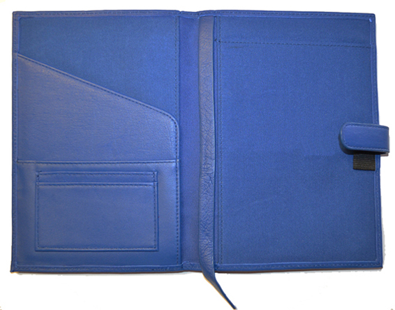 Features : Foam padded genuine leather covers with completely hand stitched and turned edges. Inside has pen slot, interior pockets, and a document flap. Both top-loading and side-loading slots on the right pocket. Writing pad included.